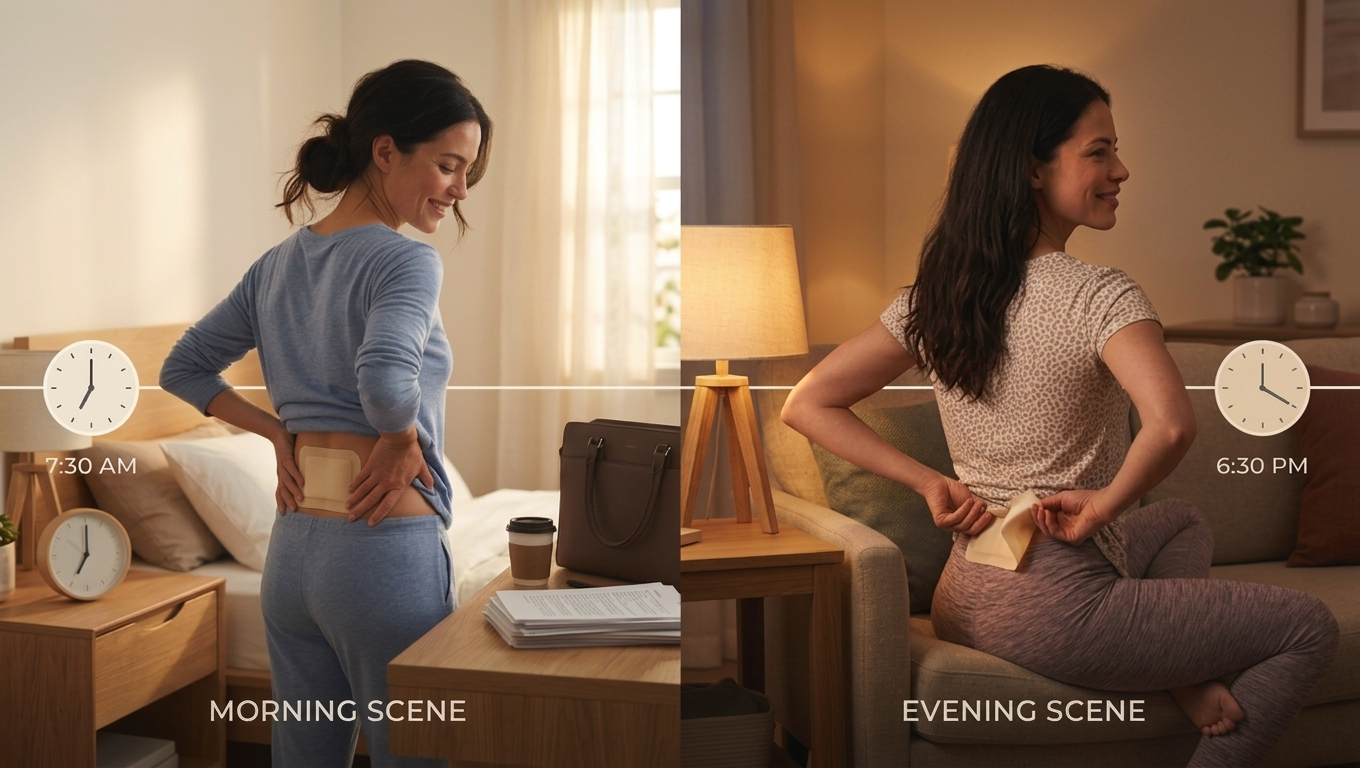 - Nighttime: Apply a patch before bed for uninterrupted overnight relief without needing to set an alarm for your next pill