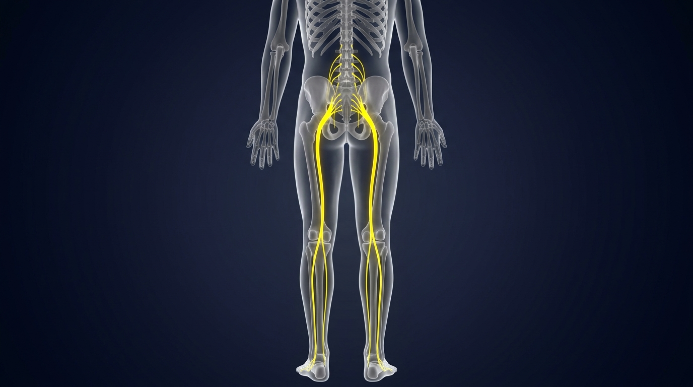 Sciatica isn't a diagnosis — it's a symptom. It describes pain that follows the path of the sciatic nerve, the longest nerve in your body, running from your lower spine through your hips, buttocks, and down each leg.